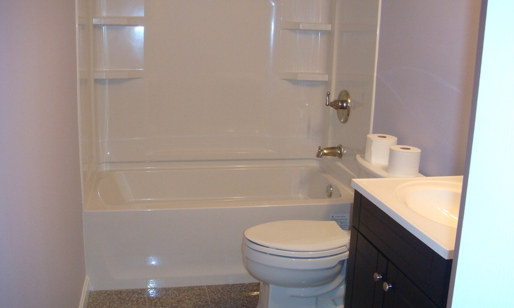 The apartment build-out included wood stairs and a front porch at the entryway. We installed ceramic tile in the kitchen, granite tile in the bathroom, and teak hardwood floors in the living room and bedrooms. Custom archways and built-in bookshelves gave the space unique details, while the granite countertops and stainless steel appliances resulted in a quality finished product.